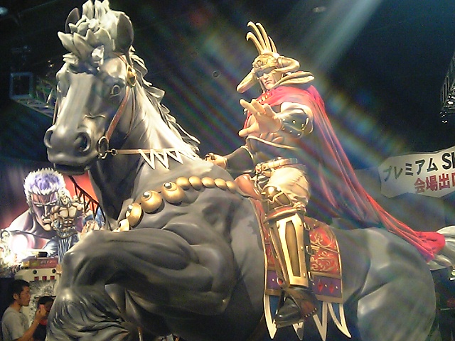 これが、4メートルのラオウ像、黒王号にまたがってます